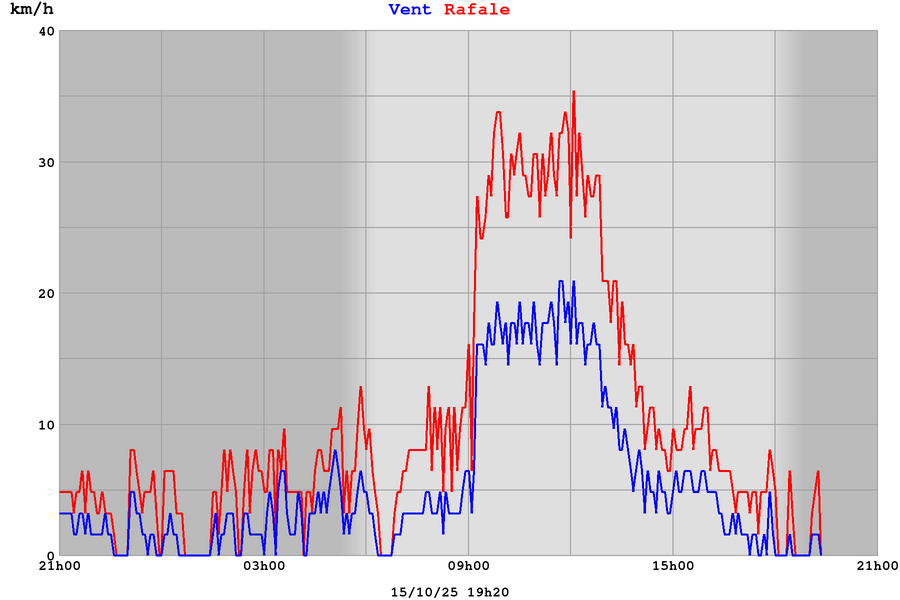 Vitesse des rafales | 27 km/h |