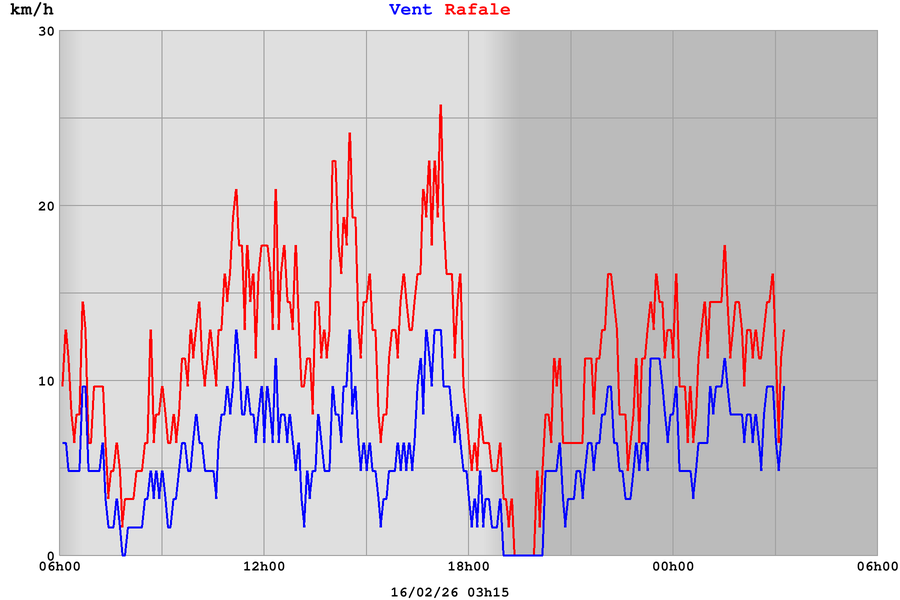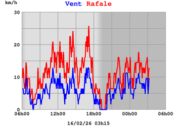 | Vitesse des rafales | 10 km/h |