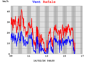 Vitesse des rafales 24 km/h