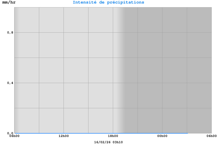 | Intensité de précipitations | 0,0 mm/h |