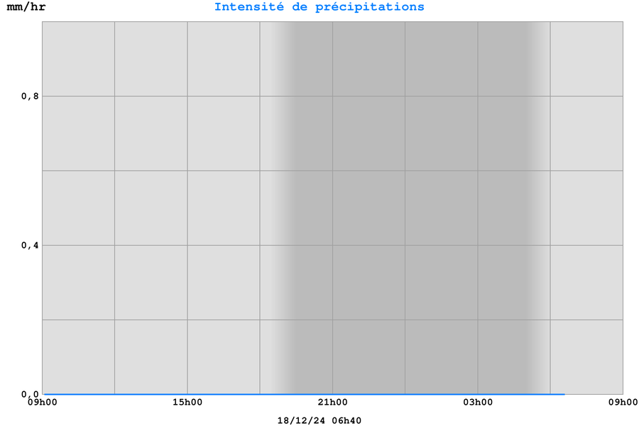 | Intensité de précipitations | 0,0 mm/h |
