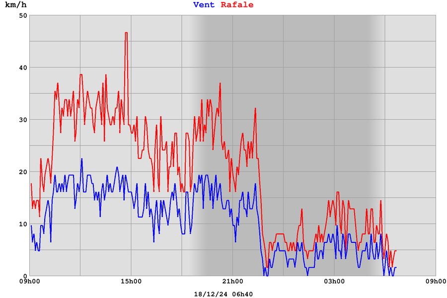 | Vitesse des rafales | 5 km/h |