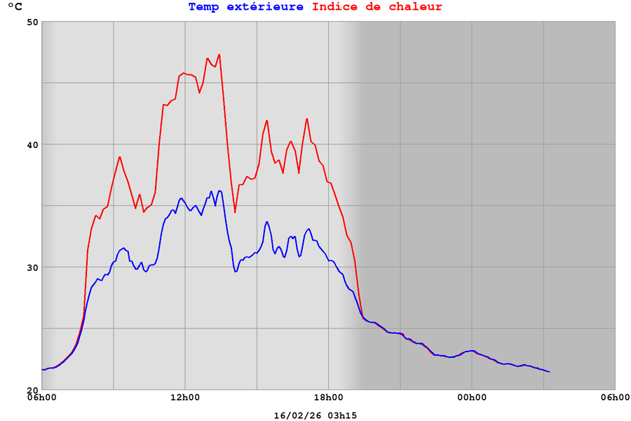 | Indice de chaleur | 21,9°C |