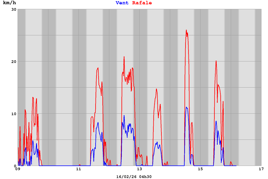 | Vitesse des rafales | 0 km/h |